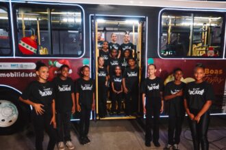 Chegando às 18 horas, três ônibus lançaram o projeto, com cantada de…