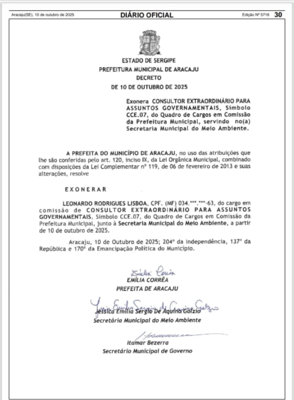 Uma das exonerações foi a de Leonardo Rodrigues Lisboa, consultor extraordinário para assuntos governamentais, ele tinha o cargo em comissão CCE07. “Ele era ligadíssimo a Ricardo Marques, inclusive, ele era o chefe de gabinete do então vereador Ricardo Marques”, afirmou Kleber.